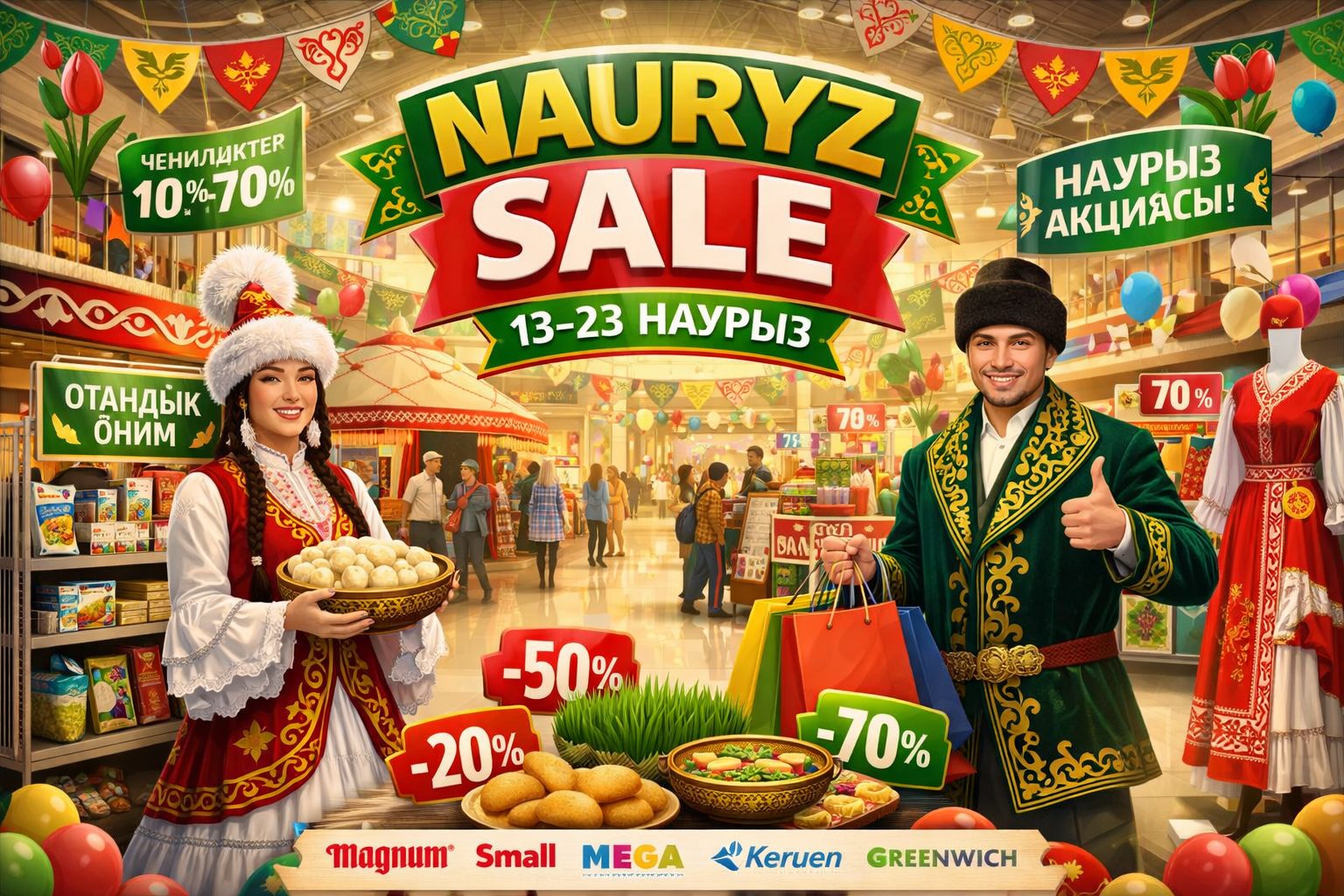 В преддверии празднования Наурыза в Казахстане стартует масштабная республиканская акция «Nauryz Sale», которая пройдет с 13 по 23 марта 2026 года на всей территории страны. Инициатива направлена на поддержку отечественных производителей, стимулирование внутренней торговли и создание единой праздничной атмосферы для жителей и гостей страны.